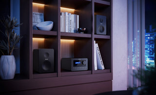 The 2-way speakers are contained in a laminated wood housing, which provides an elegant look, whilst also providing a greater warmth and minimal distortion, making your audio sound even richer. Controlling these speakers is simple via the controls on the system, and also with the included remote control meaning you can easily adjust the volume and settings from the comfort of your sofa.